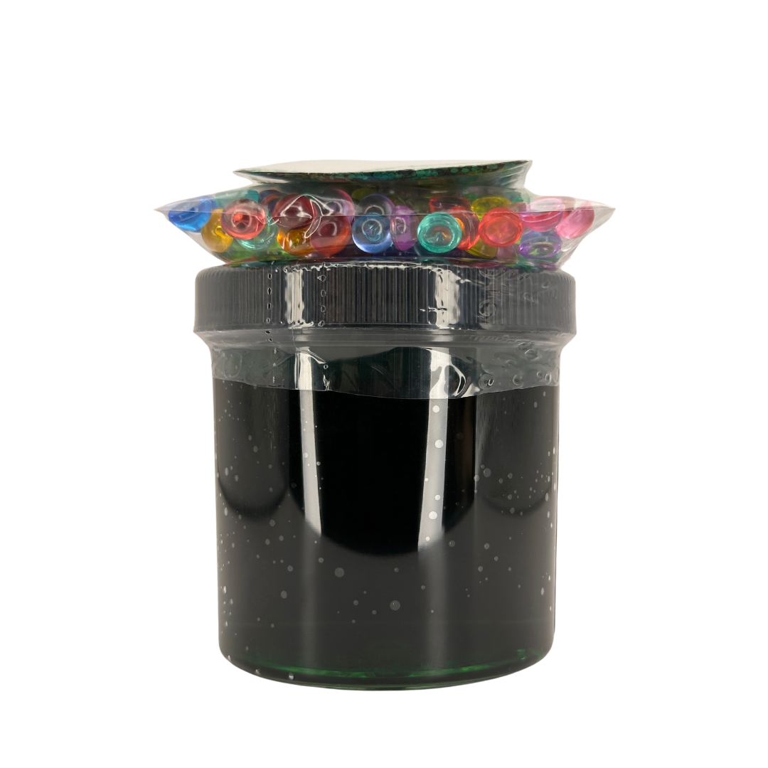 Magical, vibrant, and full of wonder! Our Enchanted Forest slime features a green clear base with multicolor fishbowl beads, sparkling green glitter, and a glowing mushroom charm. Perfect for diving into a world of enchanting fantasy!